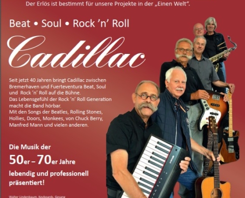Die Cadillac brachten Beat, Soul und Rock ‚n’ Roll auf die Bühne, das Lebensgefühl der Rock ‚n‘ Roll Generation . Mit Songs der Beatles, Rolling Stones, Hollies, Doors, Monkees, von Chuck Berry bis Manfred Mann. Das Publikum klatschte begeistert im Rhythmus mit.