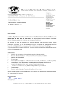 In Togo und Nepal wird der ÖWK gemeinsam mit seinen internationalen Partnern im Jahr 2026 zwei wegweisende Projekte zum Abschluss bringen. In Togo geht in Kürze ein Bildungs- und Begegnungszentrum für Landfrauen in Betrieb und in Nepal werden Kleinbauern im Umgang mit neu entstandenen Biogasanlagen und dem ökologischen Landbau geschult. Über die bisher erfolgreich verlaufene Projektumsetzung freut sich der Vorstand des ÖWK und wird dazu berichten. Auch über die geplanten Projekte im Jahr 2027, zu denen bereits am Förderantrag an das Bundesministerium für wirtschaftliche Zusammenarbeit und Entwicklung gearbeitet wird, wird der ÖWK im Rahmen der Mitgliederversammlung ebenfalls informieren. Der Verein lädt alle Mitglieder und Interessierten dazu am Montag, dem 16. März 2026 um 19:00 Uhr in das Achatius-Haus, Münsterstraße 24b in Wolbeck ein.